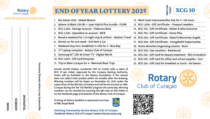 A big thank you goes to attractions such as the Children's Museum, the Hato Caves, Carmabi and the Ostrich Farm, which often have a social entrance fee, as well as to the bus companies such as FTBB (Taber), Blue Angel Tours, TM tours and also to the Rotary Bus Project Team - Aschia Daswani, Hans van Aalst, JanPieter Herwijer, Arnoud Vossen, Heidi Getrouw, Gwido Jansen and all the fellows who sometimes accompany the tours but also donate weekly to make the tours possible!